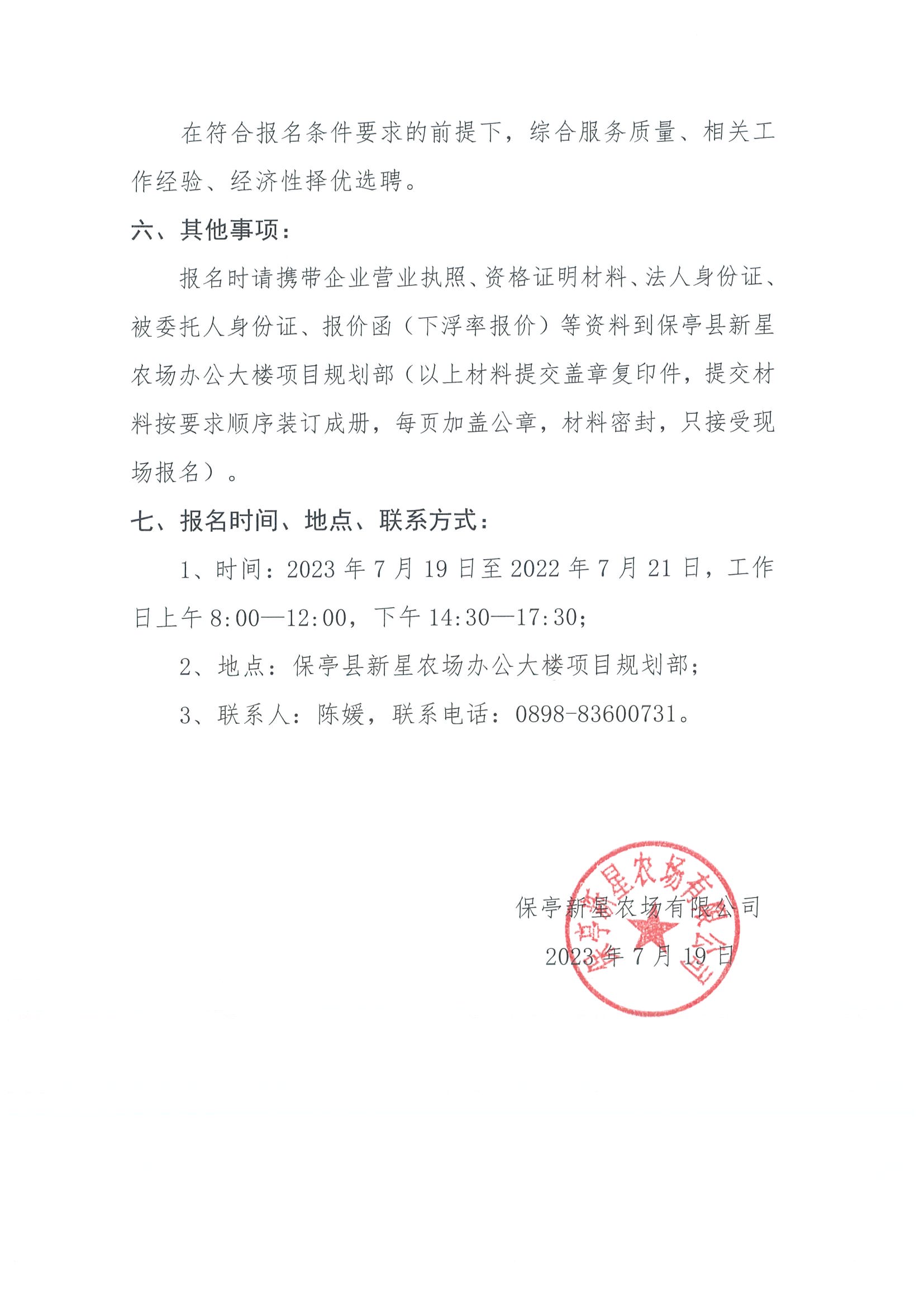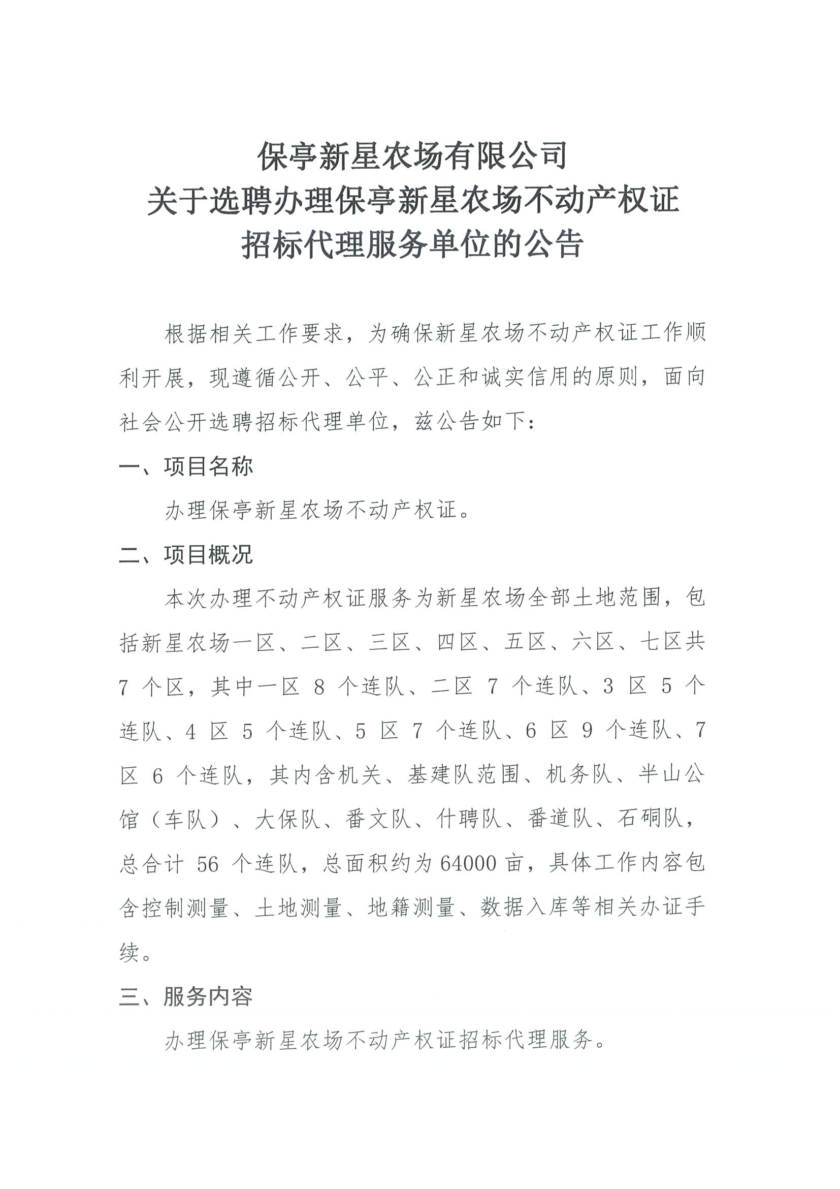 關(guān)于選聘辦理保亭新星農(nóng)場(chǎng)不動(dòng)產(chǎn)權(quán)證 招標(biāo)代理服務(wù)單位的公告