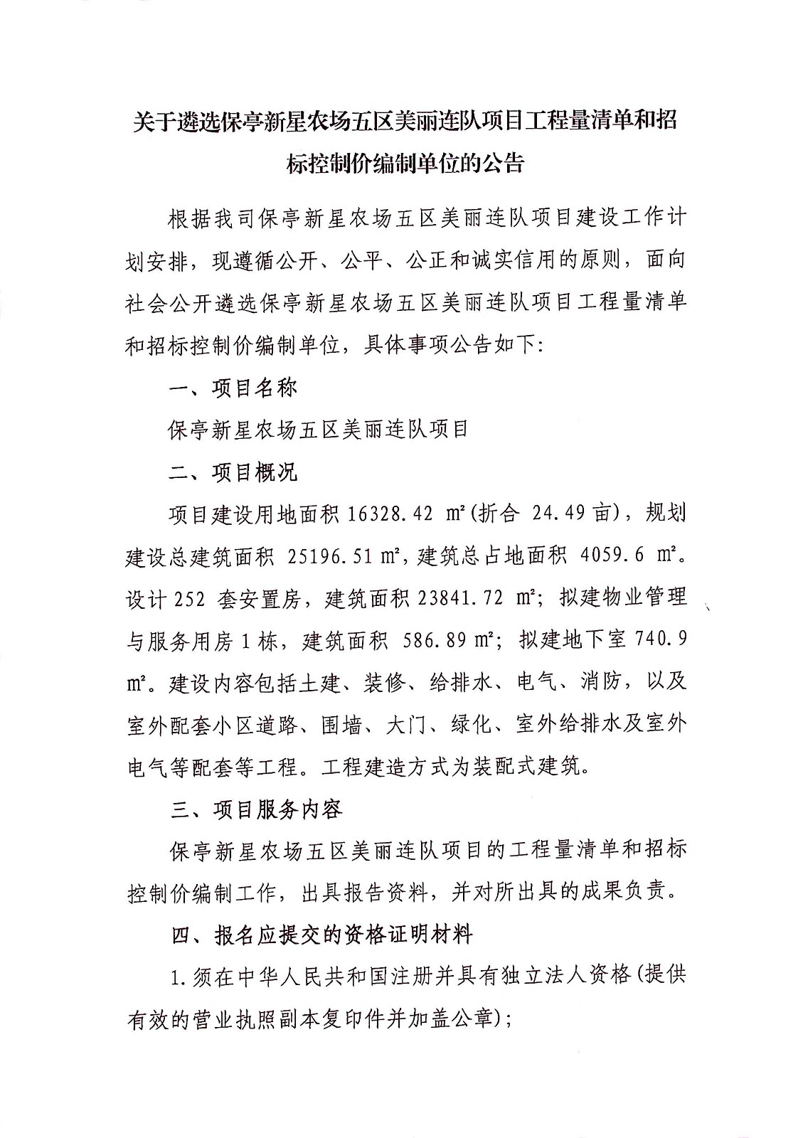 關(guān)于遴選保亭新星農(nóng)場五區(qū)美麗連隊(duì)項(xiàng)目工程量清單和招標(biāo)控制價(jià)編制單位的公告