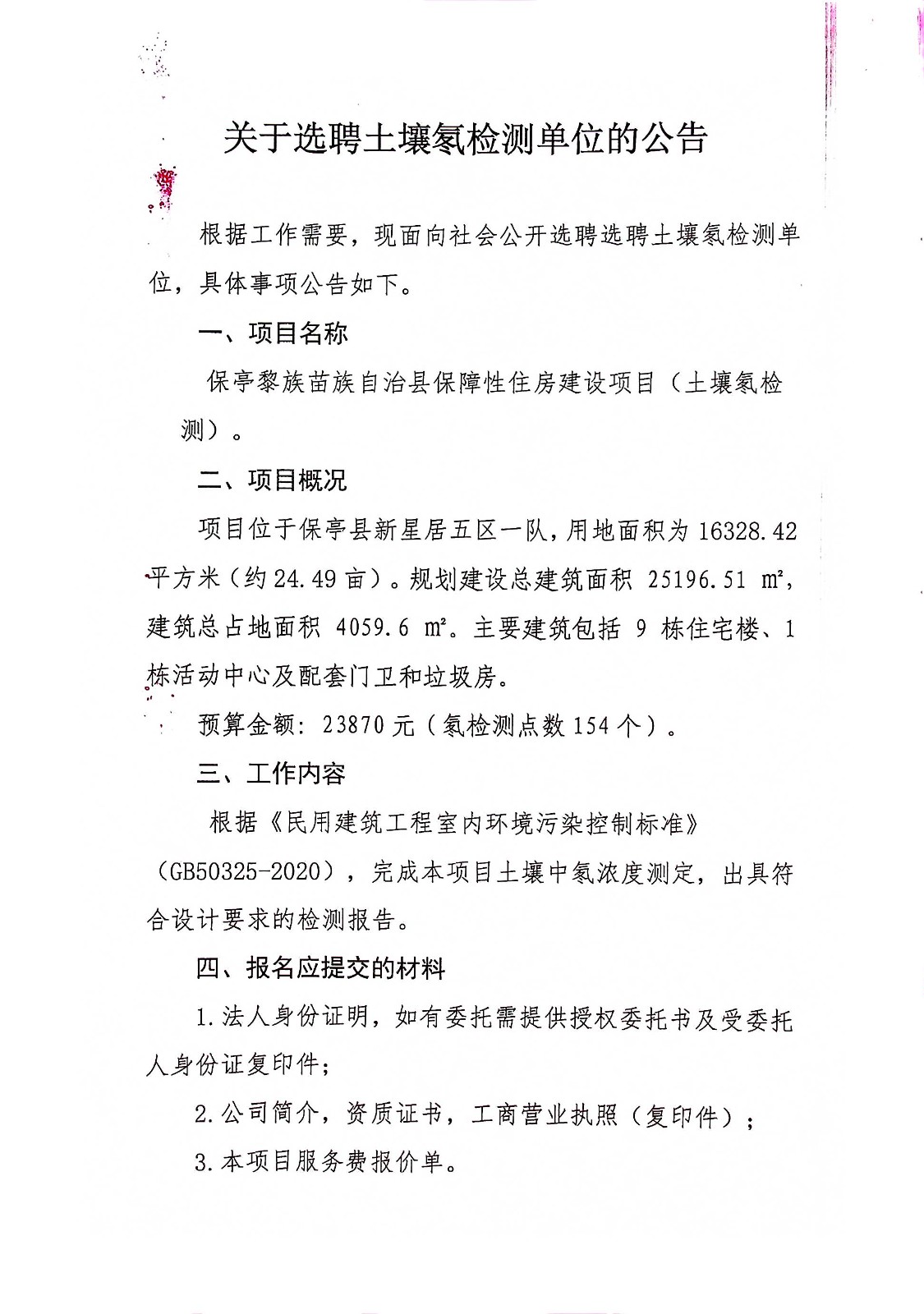 關(guān)于選聘土壤氡檢測(cè)單位的公告